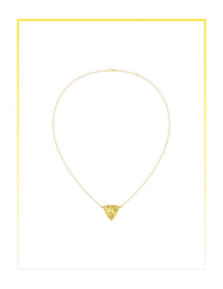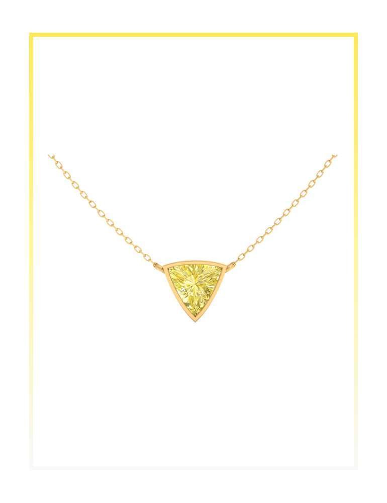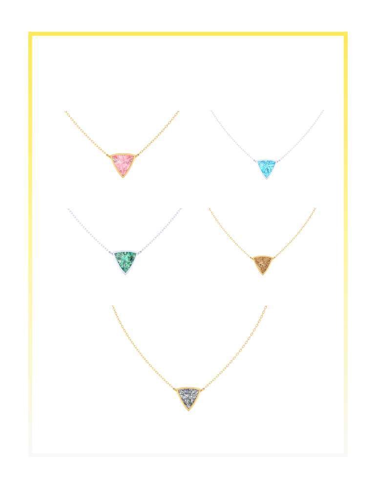 A single trillion shaped colored lab grown diamond set in a minimal pendant, designed to highlight its sharp geometry and contemporary brilliance.